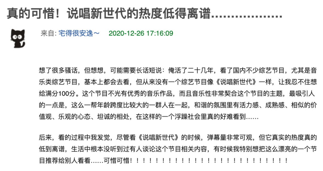 因此,B站的自制综艺《说唱新世代》并未能全网引爆,甚至在站内都只是一部分人的狂欢。B站出圈的自制内容只有两届跨年晚会(如果《后浪》也算的话〉,因为其中的节目是一代人的“集体记忆”。